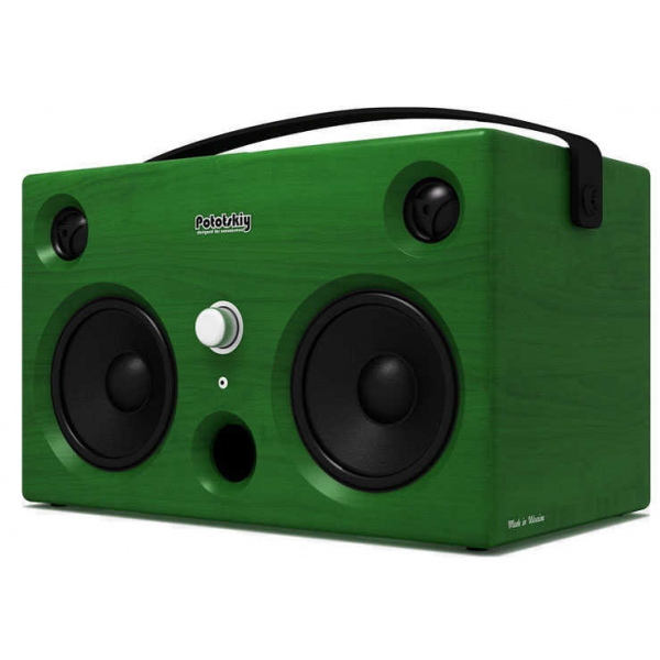 Акустическая система Pototskiy VINTAGE Green Создан для ценителей ретро дизайна. Мощный и качественный звук достигается установкой компонентных динамиков. Аккумуляторы позволят слушать любимую музыку на протяжении длительного периода времени. ХАРАКТЕРИСТИКИ Размеры: 460 х 270 х 280 (Ш x Г х В) Вес: 10,5 кг АС: 2-х полосная компонентная 2 х 6,5" Мощность: 2 x 40 Вт Диапазон частот: 50 - 22000 Гц Время работы от аккумуляторов: в среднем 15 часов Способ подключения: кабель mini-jack 3,5 мм, Bluetooth