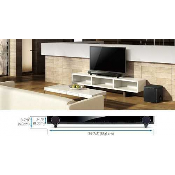 YAMAHA YAS-201 - это первоклассная акустика, состоящая из звуковой панели и сабвуфера. Данная звуковая панель имеет особую конструкцию, которая позволяет разметить устройство где угодно. Благодаря ее тонкости и компактности оптимальным вариантом станет размещение на телевизионной подставке. Кроме того, предусмотрена возможная установка устройства на стену. Элегантная и утонченная акустика с глянцевой отделкой будет прекрасно сочетаться с другой аппаратурой. Малый вес центральной АС гарантирует ее простое и беспроблемное перемещение. Панель оснащена двумя 5.5-сатиметровыми динамиками, мощность которых составляет 2х30 Вт. Беспроводной сабвуфер выполнен в прочной надежной конструкции. Форма корпуса позволяет его размещать в горизонтальном и вертикальном положении. Оснащенный встроенным усилителем сабвуфер обладает выходной мощностью в 100 Вт. Наличие линейного фазоинвертора и технологии Advanced YST гарантирует непревзойденное звучание басов. Продуманная конструкция девайса подавляет вибрации во время проигрывания аудиоконтента. Применяемая в YAMAHA YAS-201 технология AIR SURROUND XTREME гарантирует объемное окружающее звучание. Данная технология плотно насыщает все помещение, исходящими от динамиков, звуковыми волнами. Благодаря этому, при просмотре фильма звуковые эффекты имеют очень реалистичное звучание. Сделать просмотр кинопроизведений еще более комфортным помогут дополнительные функции. Полезная функция Clear Voice повысит громкость диалогов не изменяя громкость звуковых эффектов. Фирменная разработка UniVolume сделает одинаковой громкость разных источников. Для передачи аудиосигнала на звуковое устройство имеется огромное количество возможных вариантов. Одним из которых является беспроводная передача сигнала благодаря специальной технологии AirWired.